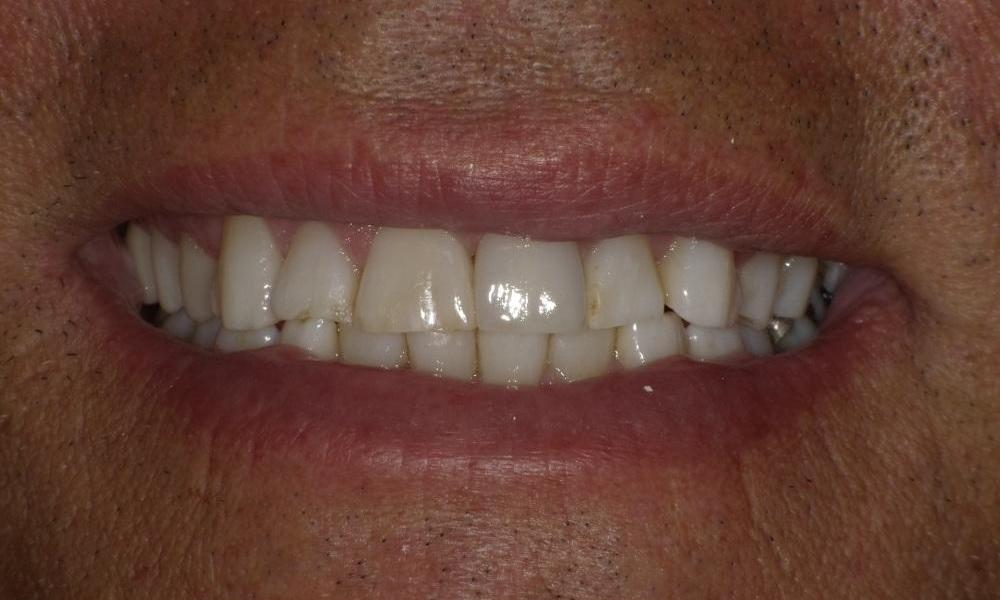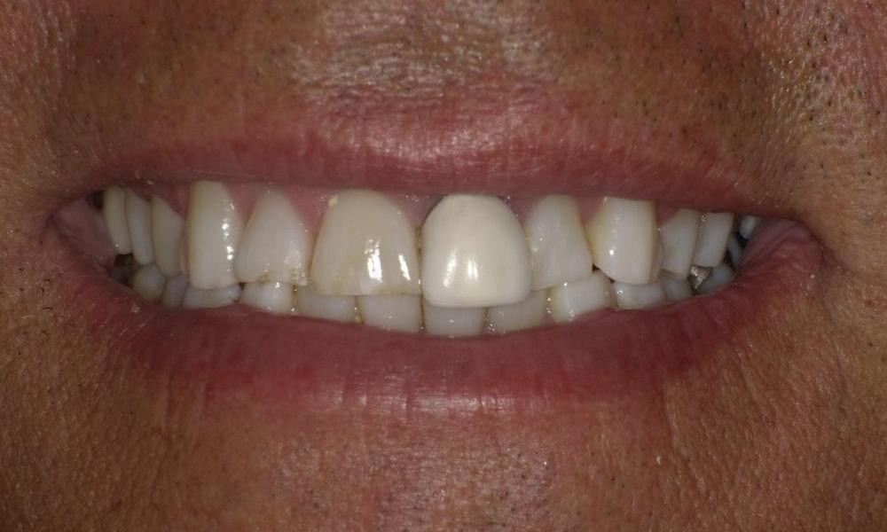 This patient came to us because his crown on his front tooth is getting loose and he had the crown for decades. While he always knew the crown didn't look so great, he never cared enough to have it redone for cosmetic reasons. Now that the crown is falling out, he doesn't really have a choice to have it replaced. Patient's existing crown looks off because it's a porcelain-fused metal crown, which can look very opaque if the crown preparation design is not done right. We decided to switch patient's crown material to a ceramic material with more translucency. We also made sure the crown has the right height and thickness. Patient was very happy with the final product!