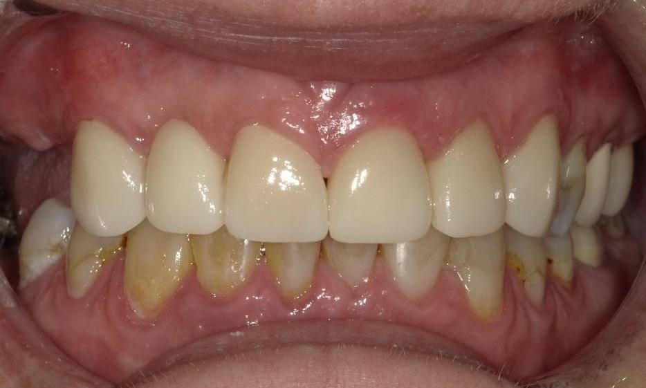 This patient came to us because she's in need of a smile makeover but she couldn't afford to do crowns on every tooth. In fact, she was only able to do a few crowns at a time. We sat down together completed our exam, records, x-ray, and formed a treatment plan based on realistic goals and budgets that were possible for the patient. We decided to remove hopeless teeth and do several crowns over a few appointments to at least stabilize the dentition and achieve a better smile. Afterwards, we will revisit and decide how to replace missing teeth and other issues. It is often difficult to split up dental work in inefficient appointments but we did our best to carry our the treatment plan with patient's budget in mind. We're glad to say our phase 1 has been completed and patient is very happy with the results. We're so happy to have been able to help in this transition and we look forward to continue our plan into phase 2.